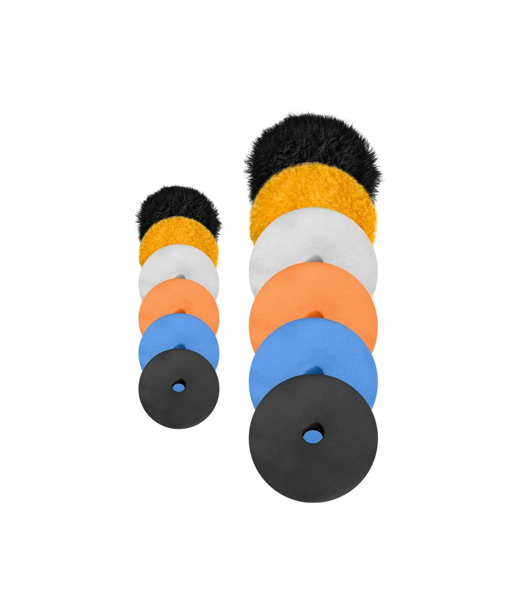 Boinas de polimento fabricadas com espumas alemãs Foam Partner e lã de alta qualidade, projetadas para máxima performance em processos de corte, refino e acabamento, além de um adesivo térmico para maior resistência ao calor.
